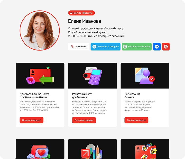 Вы получаете готовые страницы под вашу партнёрскую ссылку.